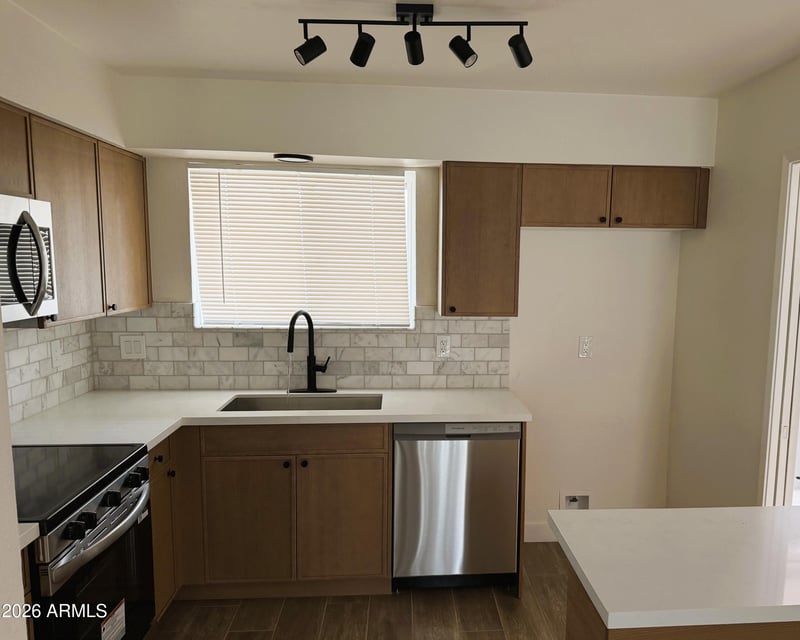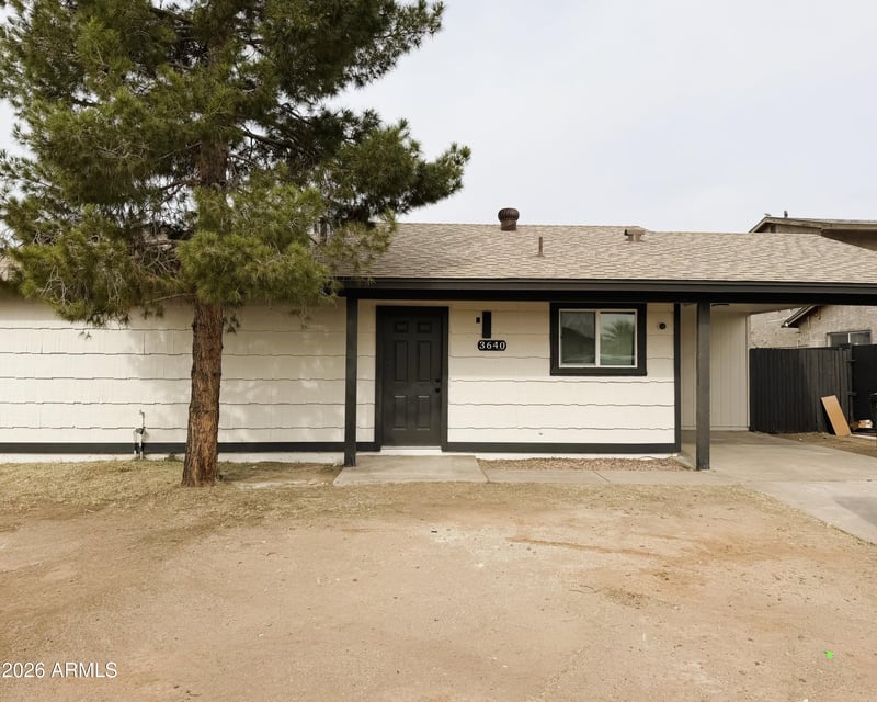 Listing details for 3640 86th Ln, Phoenix, AZ 85037 : Desert charm meets modern style in this single-story Phoenix home with NEW AC & NO HOA! This 2 bed, 1 bath home features fresh interior paint, wood-look tile in main areas, and new carpet in the bedrooms. The updated kitchen offers oak shaker cabinets, white quartz countertops, stainless steel appliances, and breakfast bar seating, opening to a spacious great room--perfect for entertaining. The backyard is a blank canvas ready for your personal touch. Ideally located near the Loop 101 and Banner Estrella. A great opportunity for a first-time buyer or investment property!