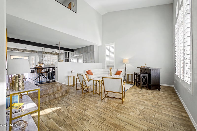 Listing details for 3649 145th Ave, Goodyear, AZ 85395 : Located in the highly sought-after Palm Valley community, this home was fully remodeled from top to bottom in 2021 and showcases thoughtful upgrades throughout. Inside you'll find soaring ceilings, neutral tones, and wood-like tile flooring throughout the home, creating a clean, modern feel. The updated kitchen features quartz countertops, stainless steel appliances, and striking stone accent walls that carry into the living area.