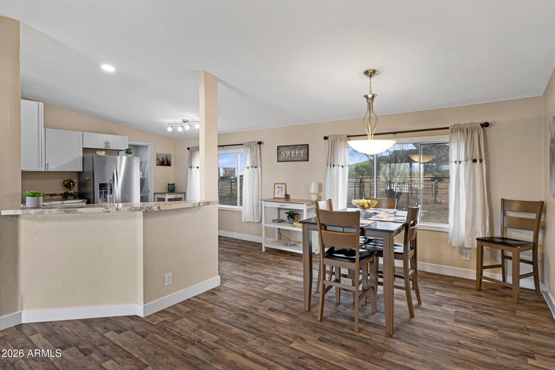 Listing details for 3667 Allen Rd, San Tan Valley, AZ 85144 : Country living with horse property close to town of Queen Creek! Check out this darling home with 3 bed+Den/office, 2 bath 2 car, shaded parking with a storage shed and partial horse stalls, private well & septic system, 2500 gal holding tank and newer pressure pump, inviting circular driveway and leased propane take so you can cook with gas. As you step into the home behold the great room and see the updated kitchen with large pantry & the primary bathroom has separate tub and shower and hall bath is in great shape. You will see no carpet, this home is MOVE IN READY! The primary bedroom with walk-in closet is separated from the other 2 bedrooms, and the den/office is to your right when you come into the house. Knowing that all appliances seen will convey with the home will be a true delight! Enjoy your morning drink on the porch/ veranda- heading to the back door you see flagstone landing in the backyard and it is ready for you to do what you want with it. Horses, a Garden, Chicken or Goats- perhaps Llamas--it can be anything you dream! Hurry up and check it out, this one will not be here long!