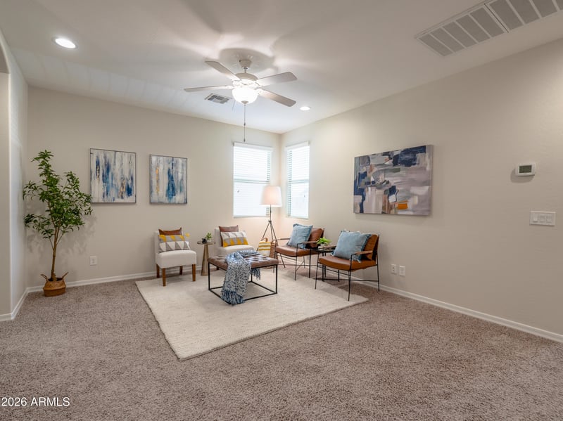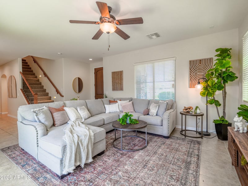 Listing details for 3690 Angstead Dr, Gilbert, AZ 85296 : Rare opportunity to get a MOVE-IN-READY 4 bed 3 full bath in the heart of Gilbert in this price range! Just minutes from all things convenient from schools to shopping to dining to the freeways & airports. And this low maintenance home is SO CLEAN and has fresh paint inside and out & works great whether you are living here full-time or are looking for a lock and leave lifestyle. HOA offers a Community Pool & parks as well as maintains the front landscaping, and the backyard pavers and turf keep it nice without too much work. This particular home is one of the few in the neighborhood that does not share a wall with a neighboring lot so you've got plenty of room to breathe on either side. With a bedroom and full bath downstairs & a secondary living space upstairs, there's room for everyone!!