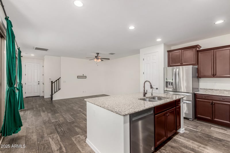 Listing details for 3690 Vest Ave, Gilbert, AZ 85295 : Welcome to this 2-story charmer in one of Gilbert's best communities! It's hard to find better amenities than Cooley Station: pools, pickleball, and several playgrounds. Inside the home, you'll find wood-tile floors, an open-concept layout, and high ceilings. The kitchen comes with SS appliances, granite counters, a walk-in pantry, and a large center island. Off the primary bedroom, you have your own private balcony. The loft works great as a media center, playroom, or space for hobbies. The garage includes attached cabinets for added storage. Best part: the HOA takes care of the front landscaping, so this is one of the lowest-maintenance homes you'll find!