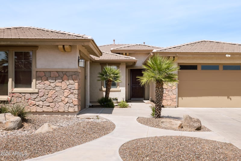 Listing details for 372 Aster Dr, Chandler, AZ 85248 : Welcome to this beautifully maintained 5 bedroom, 2.5 bath home in the desirable Avalon at Dobson Crossing in Chandler. Soaring 10-foot ceilings & an open-concept layout create a bright, inviting feel. The kitchen features a gas cooktop, built-in refrigerator and microwave, granite countertops, large island & pantry. Freshly cleaned carpet & tile throughout. Enjoy a charming front patio and a spacious covered backyard patio with sliding glass doors plus added peace of mind with perimeter security cameras that convey. Thoughtfully designed, low-maintenance front and back yards with an irrigation system make outdoor living easy. The 3-car garage offers a tandem bay & separate single-car garage. Conveniently located near schools (with public pool), parks, shopping & more!