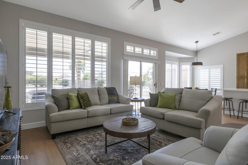 Listing details for 3755 151st Ave, Goodyear, AZ 85395 : Now this is it. Over $130K spend in 2025 to make this a virtually new home. Home was stripped down to the drywall. New cabinetry thru-out, flooring, lighting, baseboards, hardware, appliances, countertops, 2 new bathrooms, Totally new kitchen, shutters, pavered driveway, epoxy garage floor and new garage cabinets, updates to the pool to include a brand new heater that works off its own new solar unit, new roof underlayment, updated heat and air 2023, new paint in and out, and updated landscaping. Furniture and decor package available on separate bill of sale. Home was set up to be a vacation rental, so all the necessities are here. Situated on an oversized lot with an open view. Located on a low traveled street. Property is agent owned.