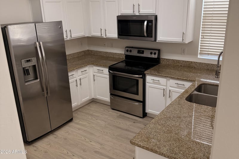 Listing details for 3816 53rd Dr, Phoenix, AZ 85043 : Welcome to this updated 4-bedroom, 3-bath home (with flexible layout for 5 bedrooms) on a corner lot in Riverbend! Built by K. Hovnanian Homes, this 2-story property offers 1,803 sqft with 9+ ft ceilings, a great room, and a desirable downstairs bedroom. Kitchen features granite countertops, a pantry, and included appliances. Upstairs includes a loft, a split primary suite with a walk-in closet, and convenient laundry. Updates completed in 2018 include flooring, kitchen, and baths. Enjoy a covered patio, low-maintenance yard, and 2-car garage with rear entry. Close to schools, parks, shopping, and freeway access. Move-in ready!