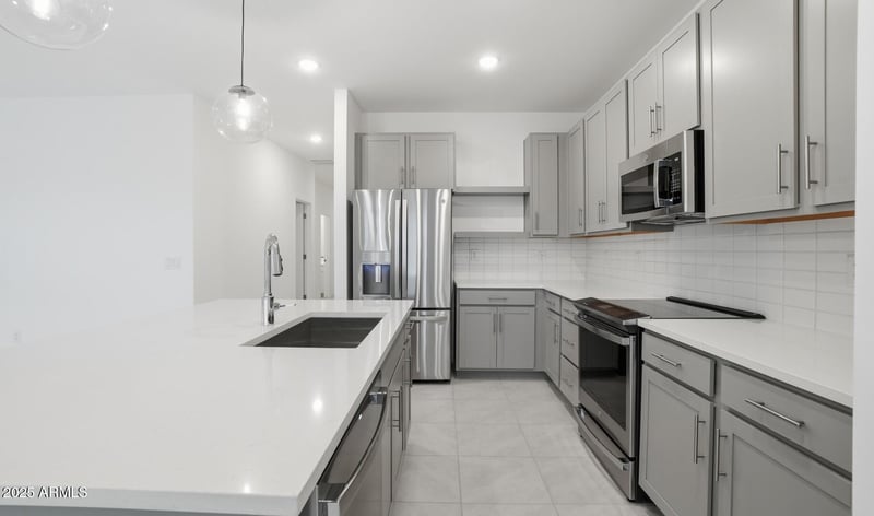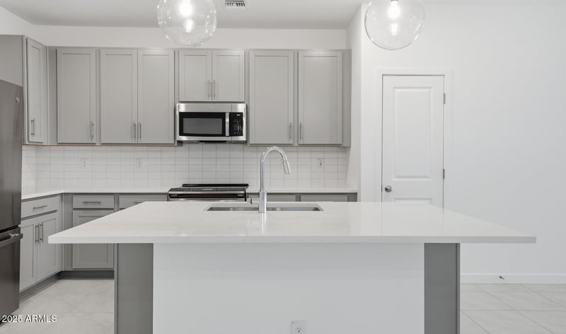Listing details for 3828 234th Ln, Buckeye, AZ 85326 : ~Special CASH Pricing Available $364,990~ Discover Monroe Ranch, a vibrant new community ideally located near major commuter routes, entertainment, and outdoor recreation. The inviting Godavari plan offers 3 bedrooms and 2 baths with Farmhouse-inspired design that blends classic charm and modern comfort. The gourmet kitchen stands out with Grey cabinets, Satin Nickel hardware, Carrara Miska quartz counters, a spacious island with sink, and GE stainless-steel appliances, including the refrigerator. The open dining area and great room create the perfect setting for gatherings, while the split floor plan ensures privacy for the serene primary suite, complete with dual sinks, a large walk-in shower, and an expansive walk-in closet. Experience comfort, style, and convenience at Monroe Ranch.