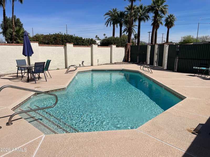 Listing details for 385 Coronado Rd #7, Phoenix, AZ 85004 : Prime central Phoenix condo in the historic Coronado District. Quaint and quiet 10 unit complex with mature landscaping and a private, gated community pool. On site guest parking area. Very near to Safeway grocery and Starbucks. Quick access to freeways, downtown sports facilities, museums, universities, restaurants and entertainment. This unit has a private covered carport not shared with anyone else. Large private front and back patios and a large private storage room off the carport. Brand new washer/dryer inside unit. Newer kitchen appliances. Updated bathroom. All matching tile flooring throughout. French doors to bedroom. Two bedroom closets. One owner since 2007.