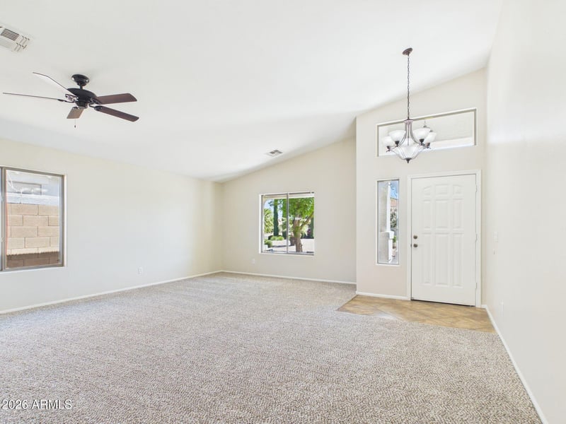 Listing details for 38552 Beverly Ave, San Tan Valley, AZ 85140 : Move in ready, single level home in Pecan South featuring 4 bedrooms, 2 bathrooms and 2,151 sq ft of comfortable living space. This move in ready home offers an open floor plan with fresh interior paint and new carpet. Spacious kitchen with island, walk in pantry, r/o system and built in tech nook that flows into the main living area with lots of natural light. Spacious primary suite with separate shower and garden tub along with large walk in closet. Garage with side service door and built in storage. Backyard with covered patio and no back neighbors! HVAC 2025, Exterior paint 2022. Conveniently located near neighborhood elementary and middle schools, with abundant shopping, dining, and everyday amenities just minutes away.