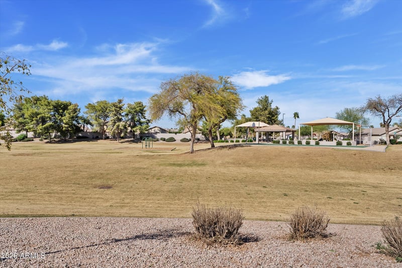 Listing details for 3861 Olive Ave, Gilbert, AZ 85234 : Lovingly maintained for 26 years, this Gilbert home reflects true pride of ownership inside and out. With a two-year-old roof, a NEW upgraded HVAC system (2025), and newer exterior paint, the major systems have been thoughtfully updated, showcasing consistent and proactive care. Lush green grass and a serene water feature create a peaceful backyard setting, with soothing sounds flowing through the home on a beautiful day. The upgraded primary bathroom offers a fresh, modern retreat. Epoxy garage floors and built-in cabinets add style and function. This gem is positioned directly across from the expansive neighborhood park, and is a short drive to the Epicenter's dining, coffee shops, and entertainment, with convenient access to US-60 and Loop 202.