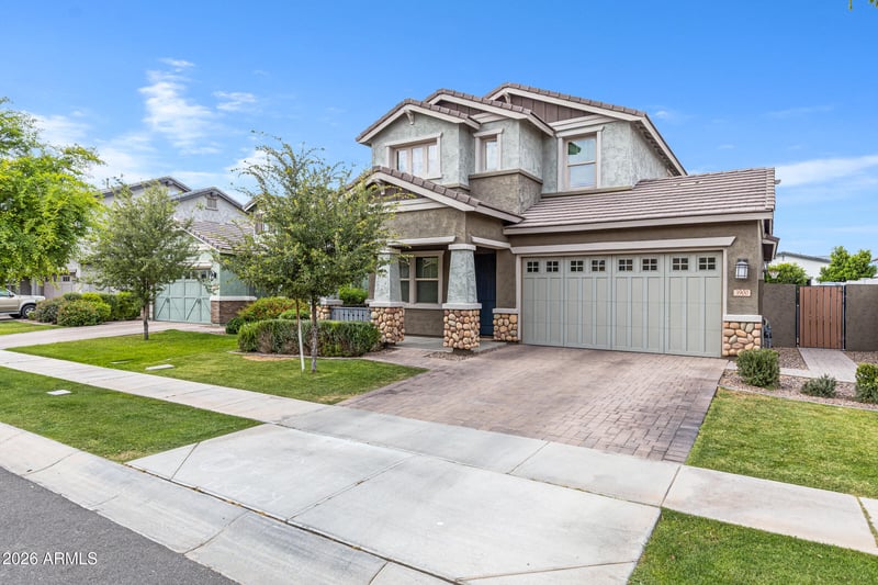 Listing details for 3900 Appaloosa Rd, Gilbert, AZ 85296 : Built in 2021 by Fulton Homes, this like-new residence is nestled in the highly sought-after Morrison Ranch Lakeview Trails community. Offering 5 bedrooms and 3 bathrooms, this home is thoughtfully designed for both everyday living and effortless entertaining. Step inside to a versatile front room--ideal as a formal living area, den, or home office--tailored to fit your lifestyle. The open-concept great room seamlessly connects to the kitchen, creating a bright and inviting space perfect for gatherings. A downstairs bedroom and full bath provide a convenient option for guests, multigenerational living, or a private office setup. Enjoy true indoor-outdoor living with an upgraded 16-foot sliding glass door that opens to a beautifully designed backyard. Highlights include a pergola with built-in BBQ, cozy gas fireplace, extended covered patio with pavers, low-maintenance artificial turf, and mature ficus trees offering added privacy. Relax on the charming front porch--perfect for enjoying Arizona's beautiful evenings. Ideally located just minutes from multiple freeways, shopping, dining, and everyday conveniences. Move-in ready and impeccably maintained--this home is a must-see and won't last long!