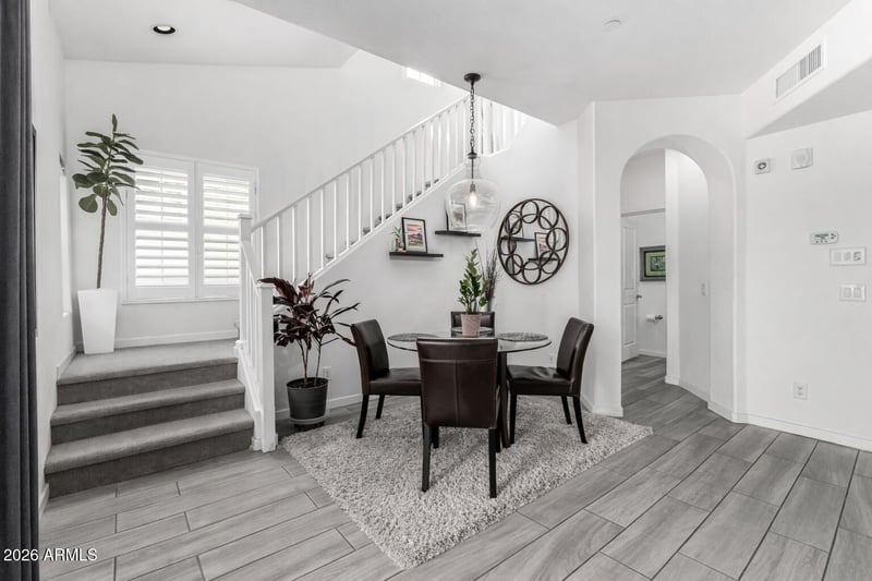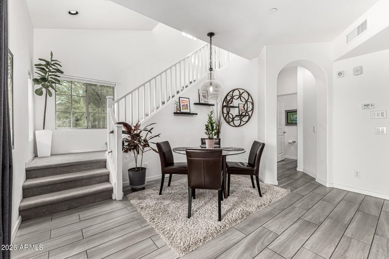 Listing details for 3935 Rough Rider Rd #1293, Phoenix, AZ 85050 : This home has been thoughtfully prepared, verified, and positioned to deliver clarity and confidence from the moment it hits the market. Located on the Scottsdale border within the gated Villages at Aviano, this 2-bedroom, 2.5-bath townhouse offers a functional dual-suite layout in one of the most desirable pockets of the Desert Ridge area. Prior to listing, the property has undergone a pre-listing inspection with little to no repairs identified, along with a termite inspection with no evidence of activity. Both reports are available upon request, providing buyers with a clear understanding of the home's condition before they step inside. The interior is clean, well-maintained, and filled with natural light. The open-concept main level creates a seamless connection between the kitchen, dining, and living spaces, offering both functionality and flow. Upstairs, each bedroom features its own en-suite bathroom, creating a flexible layout that supports a variety of living arrangements, along with a convenient guest half-bath on the main level. Plantation shutters are being installed throughout the home, adding a finished, cohesive look while enhancing privacy and light control. In the primary suite, the open wall design has been refined to provide additional privacy, improving overall comfort and usability of the space. Positioned as an interior unit, the home benefits from a quieter setting within the community. Residents of the Villages at Aviano have access to the Aviano Community Center, which includes resort-style pools, a fitness center, tennis, pickleball and basketball courts, expansive green space, a seven-acre park, and a resident-only water park. The HOA also includes water, sewer, and trash services. The location provides immediate access to Desert Ridge Marketplace, High Street, Kierland Commons, and Scottsdale Quarter, along with convenient connectivity to Loop 101 and SR-51. Every element of this property--from preparation to presentation--has been handled with intention, creating a clean, well-positioned opportunity in a highly sought-after area.