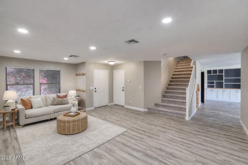 Listing details for 3940 Moccasin Trl, Gilbert, AZ 85297 : Welcome to this beautifully updated 4-bedroom, 2.5-bath home with a spacious loft, thoughtfully designed for comfort, style, and functionality. From the moment you step inside, you're greeted by a generous living room--perfect for welcoming guests or creating an additional gathering space. The heart of the home is the stunning remodeled kitchen, featuring stone countertops, custom cabinetry, a gas range, stainless steel appliances, and a large walk-in pantry. A charming breakfast nook overlooks the private backyard, while the open layout flows seamlessly into the oversized great room--ideal for entertaining--with a cozy fireplace and custom built-ins. You'll also find a unique under-stair ''Harry Potter'' play space, adding a fun and imaginative touch, along with a beautifully updated powder room for guests. Upstairs, the expansive loft offers versatile space for a media room, play area, or home office. The primary suite is a true retreat, complete with custom trim work, accent lighting, a large walk-in closet, and an ensuite bath featuring dual sinks and a tub/shower combination. The three additional bedrooms are generously sized, each with walk-in closets, and share a well-appointed hall bathroom. An additional upstairs storage room provides the perfect place to keep seasonal items cool and organized. Step outside to enjoy Arizona living at its finest. The backyard features a covered patio, lush grassy area, and vibrant flowering landscape--all backing to a park/common area with no rear neighbors, offering added privacy and open views. There's even ample space to add a pool if desired. Additional highlights include a 3-car garage, solar panels for energy savings, and numerous custom touches throughout. This is a home that truly has it all--space, upgrades, location, and charm. Don't miss the opportunity to make it yours--come see it today!