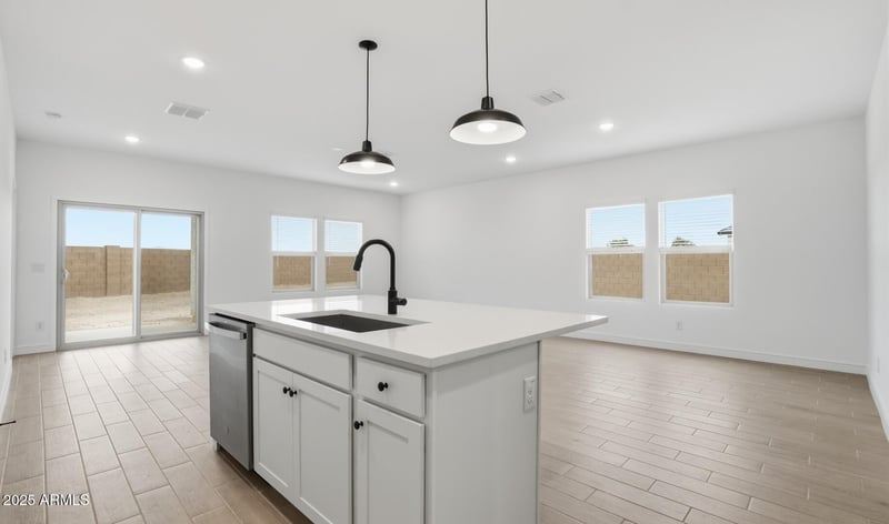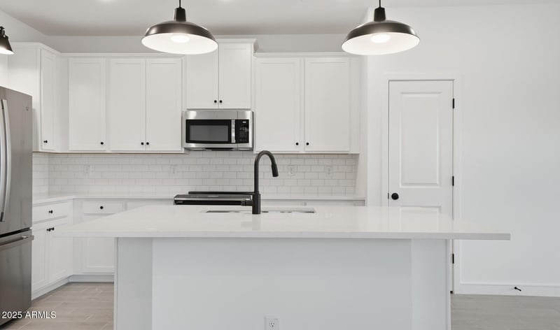 Listing details for 3949 233rd Ln, Buckeye, AZ 85326 : Welcome to Monroe Ranch, a vibrant new community perfectly situated near major commuter routes, entertainment, and outdoor adventure. The sought-after Godavari plan showcases 3 bedrooms and 2 baths with Farmhouse-inspired interiors that combine timeless charm and modern comfort. The gourmet kitchen shines with crisp White cabinets accented by Flat Black hardware, elegant Carrara Miska quartz countertops, a spacious island with sink, and GE stainless-steel appliances including the refrigerator. The open dining area and great room offer the ideal space for gatherings, while the split floor plan ensures privacy. The serene primary suite features dual sinks, a large walk-in shower, and a generous walk-in closet. Don't miss your chance to make this your home. ^^^Up to 6% of Base Price can be applied towards closing cost and/or short-long-term interest rate buydowns when choosing our preferred Lender. Additional eligibility and limited time restrictions apply. Ask for more information!