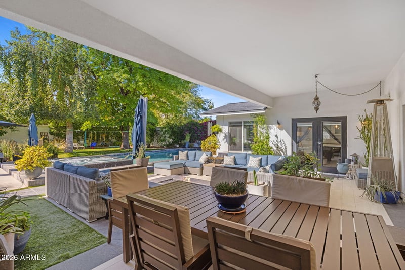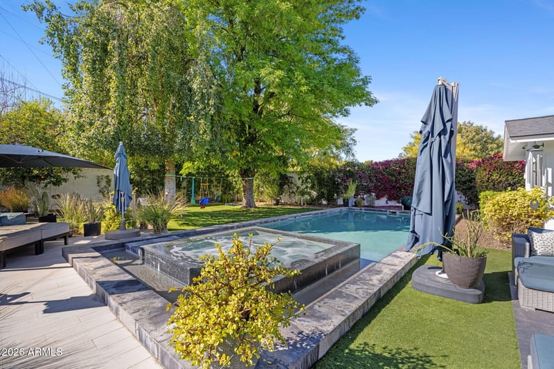 Listing details for 4008 65th Pl, Scottsdale, AZ 85251 : Nestled on a quaint street in Arcadia Proper, this charming 4-bedroom, 3.5-bath home offers the best of Arcadia living. A welcoming front patio sets the stage for front-yard entertaining, while vaulted ceilings and an open-concept living area with a fireplace create a bright and inviting interior. The kitchen features a large island, beverage fridge, and built-in coffee maker, ideal for everyday living and hosting. A mudroom and dedicated laundry room add convenience. The spacious primary suite is privately situated in its own wing with vaulted ceilings, dual vanities, and direct backyard access. The home centers around a large covered patio overlooking a pool and spa, perfect for indoor-outdoor living. Set on 1/3 acre lot with mature landscaping and ample green space, the property also offers surround sound throughout, a 2-car side-entry garage, and a prime location less than 5 minutes from Fashion Square and Arcadia favorites.