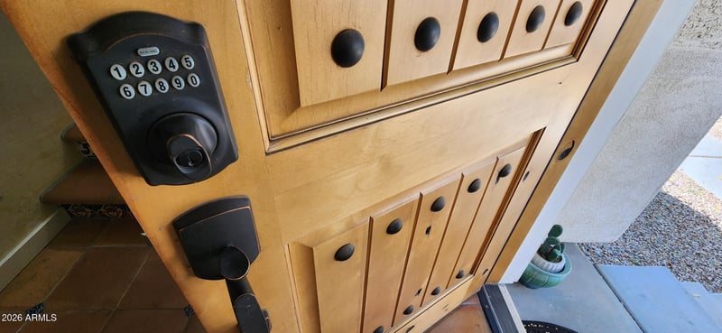 Inside, thoughtful renovations elevate every space. Enjoy premium luxury vinyl plank flooring, fresh new carpet, solid alder wood exterior and interior doors, custom wooden shutters throughout, designer lighting, and a striking custom-tiled entry and staircase. The kitchen showcases an authentic Spanish-tile backsplash that adds warmth and European charm.