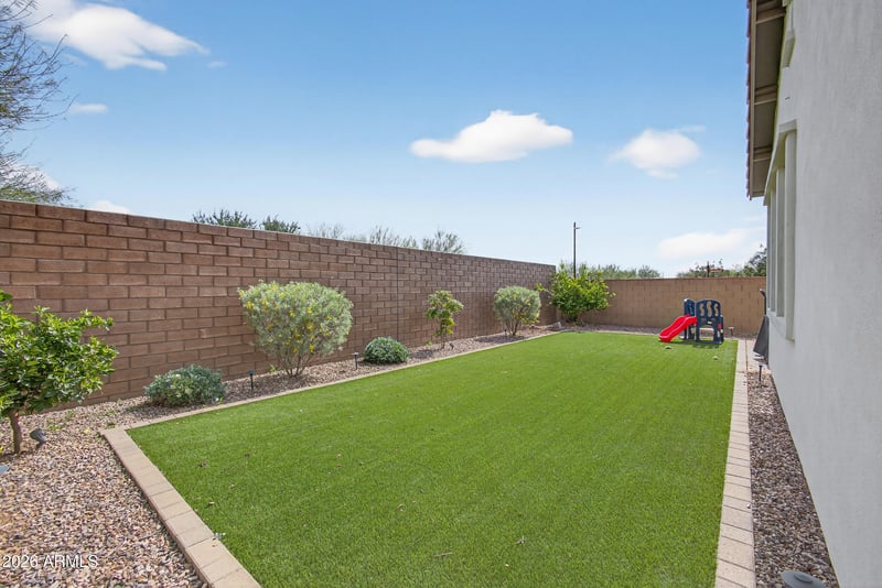 Listing details for 4065 Electron --, Mesa, AZ 85212 : Newer home on a prime corner lot with no neighbors behind you, offering privacy and open views. The oversized gourmet kitchen is the heart of the home, featuring a separate oven and cooktop, an expansive island perfect for entertaining, and a seamless flow into a huge open-concept living space. Natural light pours in, highlighting the spacious split floor plan with generously sized bedrooms. The primary suite boasts a large double vanity and a well-appointed bath. In the garage, you'll find an electric car charger, tankless water heater, and PAID-OFF solar for energy efficiency. The backyard is designed for easy living with low-maintenance turf and a convenient drip system for simple upkeep. This home is ready to move in! Eastmark here you come!