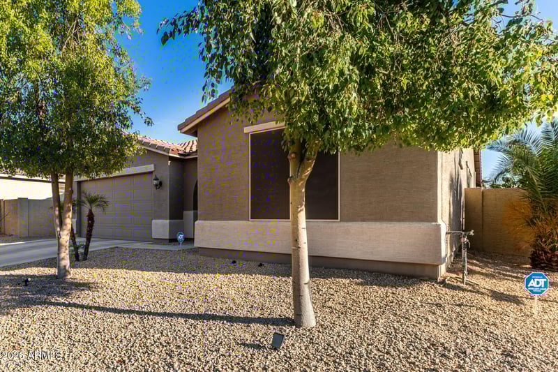 Listing details for 4125 Harwell Rd, Laveen, AZ 85339 : Fall in love with this home located on a desirable corner lot! Discover great curb appeal with an easy-care front yard enhanced by shade trees & a 2-car garage! A fantastic hallway leads you into the open common areas featuring tile flooring, ceiling fans, plantation shutters, & a welcoming atmosphere throughout. The wide-open kitchen showcases granite counters, stainless steel appliances, abundant cabinetry, & an island w/breakfast bar. Oversized main bedroom offers a cozy sitting room, a walk-in closet, & a private bathroom w/a dual-sink vanity. The fabulous backyard is ready for year-round enjoyment with artificial turf, a covered patio, & a sparkling Pebble Tec blue pool. New roof & new AC unit!! This home is sure to sell fast! Hurry!