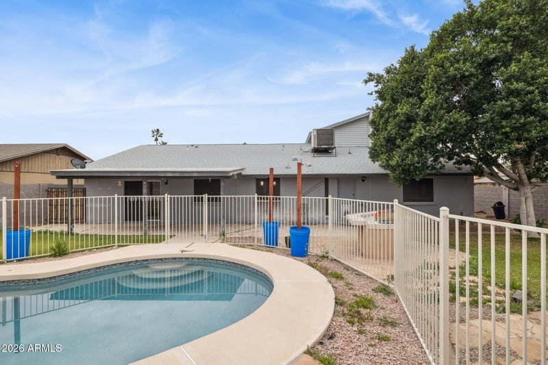 Listing details for 4152 Danbury Dr, Glendale, AZ 85308 : 4 Bedrooms + a ground floor Den, DOWNSTAIRS MASTER BEDROOM, and 3 full bathrooms. Great room floorplan so no unused living room. Open kitchen with convenient island overlooking family room. Low maintenance from yard & backyard has synthetic grass outside pool and built in BBQ. Variable Speed pool pump for pebble finish play pool; 2022 water heater & OWNED OUTRIGHT SOLAR PANELS are a HUGE bonus to maintain low cost of ownership for this great home.