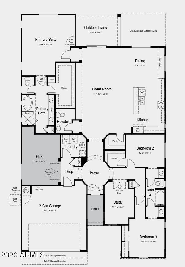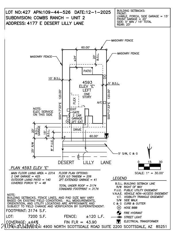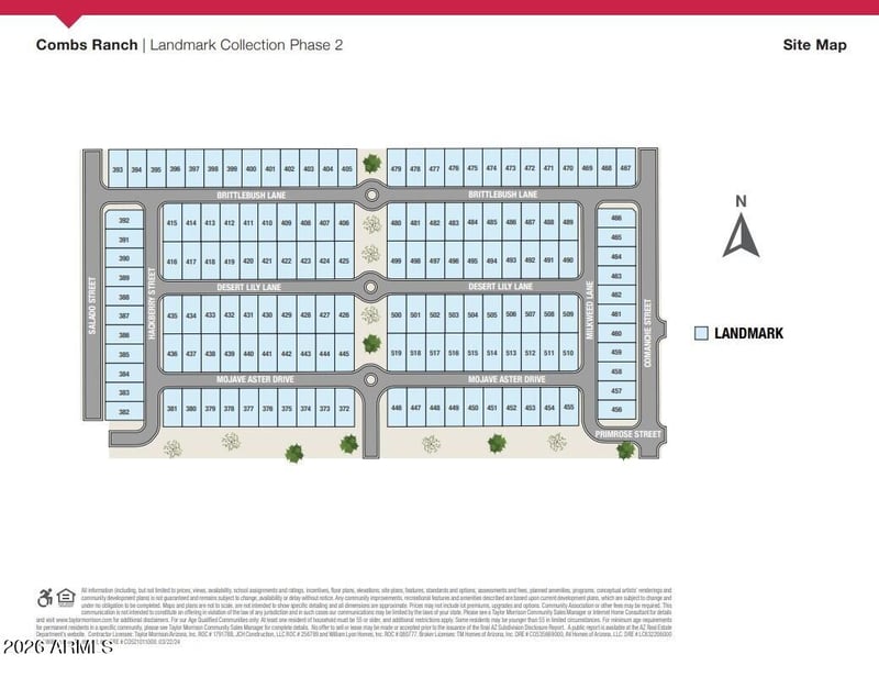 Listing details for 4177 Desert Lilly Ln, San Tan Valley, AZ 85140 : What's Special: Best Seller | Dedicated Study | Flex Room | North Facing Lot. New Construction - June Completion! Built by America's Most Trusted Home Builder. Welcome to the Hillary at 4177 E Desert Lilly Lane in Combs Ranch Landmark! This beautifully designed home features a private study, and a flex room, all within 2,520 square feet of thoughtfully planned, open-concept living. Just off the foyer, both the study and flex room showcase double glass doors, creating bright, flexible spaces ideal for working from home or entertaining. Two secondary bedrooms and a full bath are also located nearby, while a functional drop zone and laundry room are positioned on the opposite side of the home. At the heart of the layout, a light-filled great room flows seamlessly into a spacious kitchen with a large island and an inviting dining area, perfect for everyday living and gatherings. Privately tucked away, the primary suite offers a serene retreat with dual vanities, a separate tub and shower, and a generous walk-in closet. Enjoy the perfect blend of natural beauty and modern convenience in this picturesque community in San Tan Valley, AZ. Then step outside to enjoy your community's plentiful amenities, including a butterfly garden, pool, playground, trails and more! Additional highlights include: 2' garage extension, 10' ceilings, 8' interior doors, garage service door, tile flooring throughout, utility sink in the garage, pots and pans drawer, comfort-height toilets, and 2" faux wood blinds. MLS#7019826