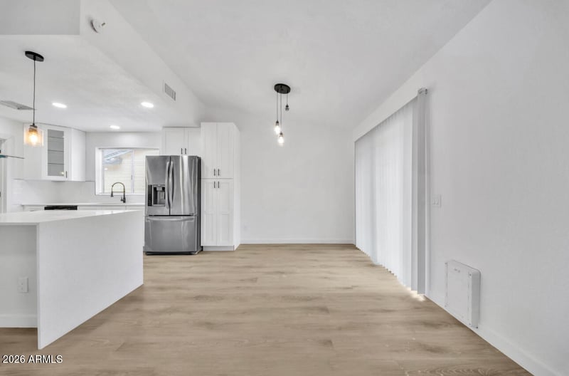 Listing details for 4214 101st Ave, Phoenix, AZ 85037 : Major upgrades already done — just move in and enjoy. This beautifully remodeled 3 bedroom, 2 bathroom home features a new roof (2019), HVAC (2018), and new water heater, giving added peace of mind from day one. Inside, you'll find a bright open layout with modern finishes throughout. The upgraded kitchen showcases sleek cabinetry, stainless steel appliances, and a seamless flow into the spacious living and dining areas — perfect for everyday living and entertaining. Both bathrooms have been refreshed with contemporary tile surrounds and new vanities, while wood-look flooring and clean finishes run throughout the home. Generously sized bedrooms offer flexibility for guests, a home office, or future needs. Enjoy the freedom of no HOA and skip the renovation stress — this home
