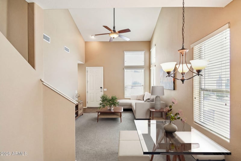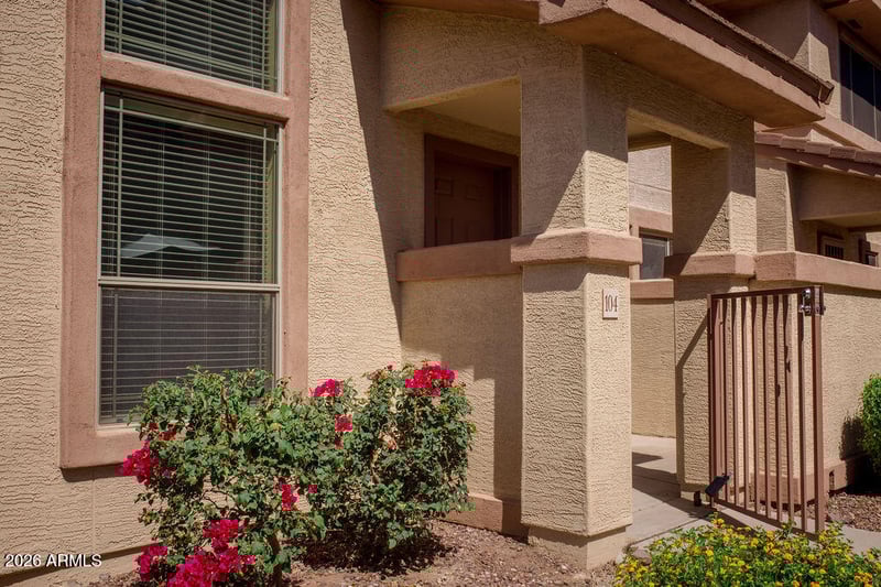 Listing details for 42424 Gavilan Peak Pw #33104, Anthem, AZ 85086 : Welcome to the Villages, where residents enjoy lock and leave living in private gated community. Water, sewer, trash, roof replacement, exterior painting & maintenance, landscaping are included in HOA. Plus a private gym, pool & spa for residents, along w/access to all Anthem parkside amenities AND lower insurance rates (only a wall-to-wall policy needed). This desirable 2 bedroom plus loft, 2.5 bath end-unit offers natural light, comfort and convenience. Primary bedroom downstairs with patio access, a walk-in closet and en-suite bath. 2-car garage (full-size truck fits), walk-in pantry, pull-out trash & shelves and downstairs half bath for guests. Enjoy newer A/C! Ideally located near shopping, medical & dining. This home is the perfect blend of low-maintenance living & everyday comfort.