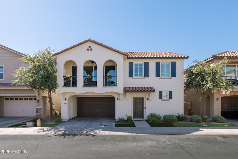 Listing details for 4317 Erie St, Gilbert, AZ 85295 : At almost 2,000 square feet, this three bedroom two bathroom home lives large and has been upgraded throughout. To start the custom entry stairs treads have been replaced with oak that lead to an inviting living area with an open floorplan connecting usable outdoor space and the kitchen. Added glass railings bring in more light to expand the area. New carpet upstairs accents the tile in the living area perfectly. Other improvements include wood shutters, two barn doors (one in the laundry and one in a bedroom), accent wall and hidden closet door in the primary bedroom, additional lighting in the carport, built in storage shed, pavers and stepping stones in the backyard, extended floor area and added utility pantry in the kitchen AND LED lighting throughout. Verde at Cooley Station or San Tan Village mall are just moments away as well as easy access to the freeway and the rest of the valley.
