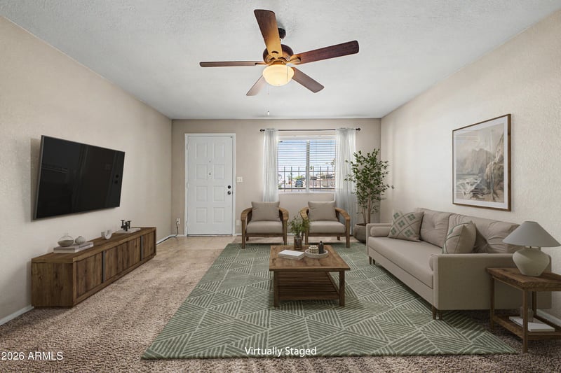 Listing details for 4329 Capri Ave #222, Mesa, AZ 85206 : Welcome to this delightful 2-bedroom townhome in the sought-after 55+ community of Sunland Villas! Step inside to discover an inviting living room flooded with natural light, a kitchen ready for everyday cooking, and thoughtful touches throughout -- including neutral tones, clean carpets, and ceiling fans. The primary suite offers a walk-in closet and a private bathroom, while the second bedroom -- complete with a closet and outdoor access -- adapts effortlessly as a home office or hobby room. Relax and recharge under the covered back patio. The unit even has a 1-Car Garage. As a resident of this vibrant active adult community, you'll enjoy access to Sunland Village amenities, the Sunland Village Golf Club, and the nearby Greenfield Park. A rare opportunity you don't want to miss!