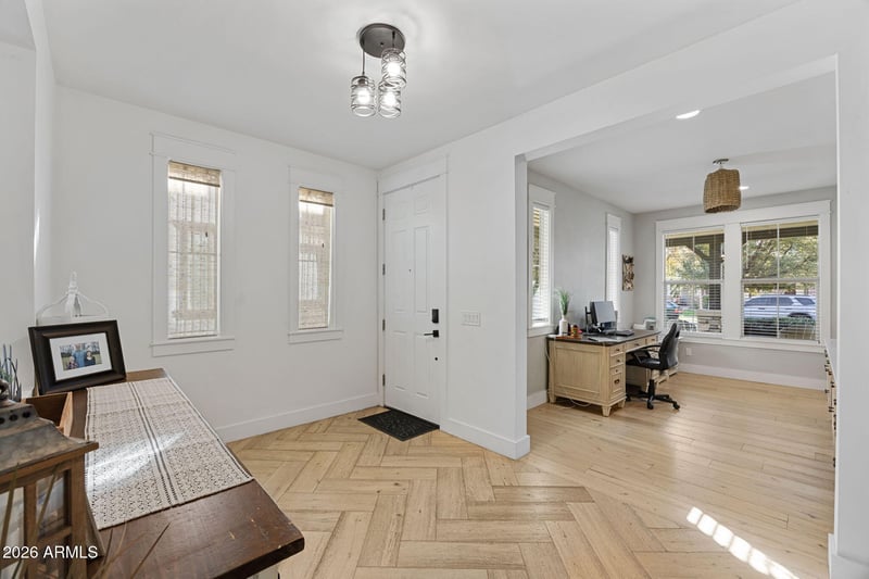 The great room is warm and inviting, filled with natural light and anchored by custom built-ins that create a cozy yet elevated focal point for both everyday living and memorable gatherings. Throughout the home, you'll find intentional details and custom upgradesfrom a practical drop zone to designer woven window treatments, upgraded wood flooring, and elevated finishes that add character at every turn.