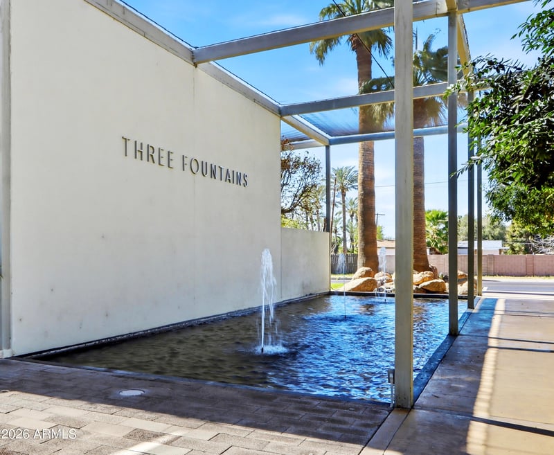 Listing details for 4411 40th St #51, Phoenix, AZ 85018 : Welcome to an architectural gem in the iconic Three Fountains community designed by Al Beadle. This super clean, move-in ready residence blends timeless mid-century modern design with effortless lock-and-leave living. Enjoy open living spaces, abundant natural light, updated baths, ample storage, and a private patio with seamless indoor-outdoor flow. Dedicated parking and Tesla charger included. Community pool and lush grounds. Located with the coveted Hopi Elementary School District. Minutes to Arcadia, Biltmore, Paradise Valley, hiking at Camelback Mountain, Scottsdale, Downtown Phoenix, and Phoenix Sky Harbor International Airport. Walking Distance to LGO, Postinos. Chelseas Kitchen, & North. Ideal as a primary home, retreat, or investment.