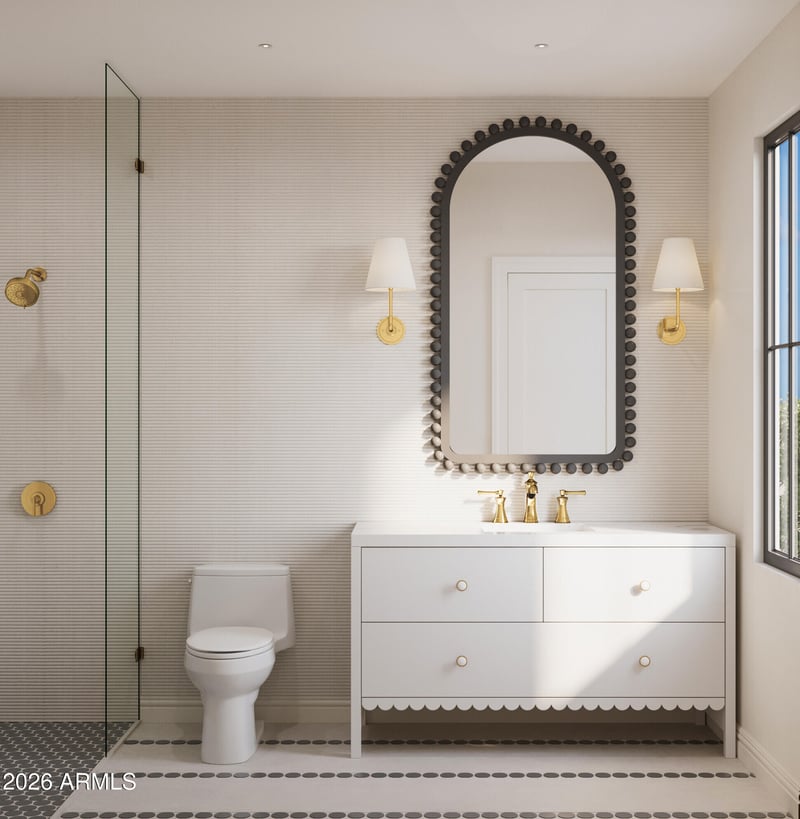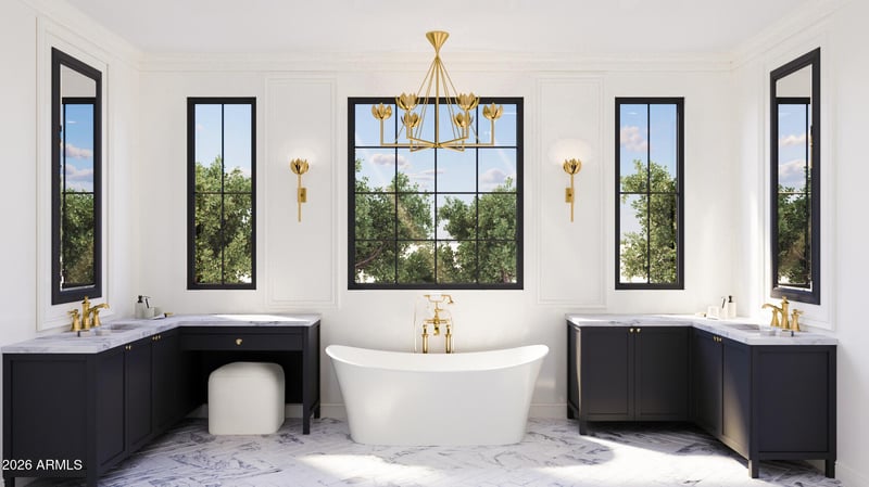 Listing details for 4435 Glenrosa Ave, Phoenix, AZ 85018 : Discover refined luxury in Arcadia Create's latest new build located in the coveted Hopi School District. Spanning over 4,500 sq ft with a 3-car garage, this home is estimated for completion October 2026, offering buyers the opportunity to customize non-structural finishes, including custom tile and lighting selections. The first floor features a primary suite, formal dining room, and an expansive great room with high ceilings. The chef's kitchen showcases Thermador appliances, an oversized island, quartzite countertops, and a butler's pantry. The primary suite is a true retreat with marble countertops, dual vanities, soaking tub, walk-in shower, large closet, and private laundry. Upstairs offers Camelback views, a flex space, four ensuite bedrooms, guest powder, laundry + 3 balconies.