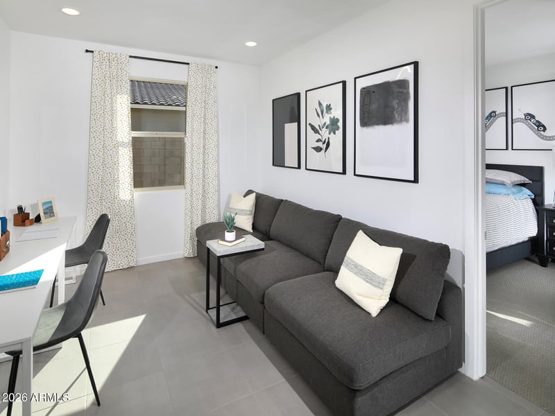 Listing details for 4437 Hunter Trl, San Tan Valley, AZ 85144 : Former Model! This plan has it all where the perfect blend of functionality and elegance comes to life. This stunning home boasts 4 bedrooms and 3 baths, plus a bonus space for office, play area or workout room. A standout feature of the Lark is a private bath in one of the bedrooms that could be used for an in-law space. The heart of the home is the kitchen, where the island takes center stage, as a practical social hub where family and friends can gather. The kitchen, White shaker style cabinets, granite counter and a generous amount of tile, overlooking the great room, creating an inviting atmosphere. Each of our homes is built with innovative, energy-efficient features designed to help you enjoy more savings, better health, real comfort and peace of mind.