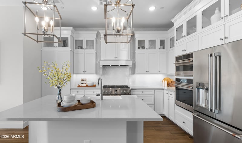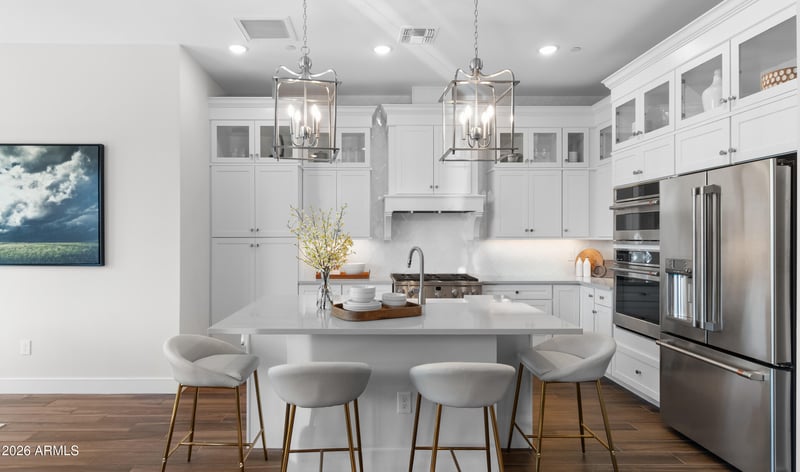 Listing details for 4464 203rd Ln, Buckeye, AZ 85396 : Discover elevated 55+ living in Victory at Verrado, where resort-style amenities and a vibrant, active lifestyle set the tone. The thoughtfully crafted Clyde plan showcases timeless, designer-curated finishes throughout. The gourmet kitchen impresses with a spacious island, Soapstone Mist quartz countertops, crisp white cabinetry with satin nickel hardware, and GE Profile stainless steel appliances with a wall oven. An open great room, highlighted by a coffered ceiling, flows effortlessly to a covered patio for seamless indoor-outdoor living. A versatile home office offers space for work or fitness, while the private primary suite features a dual vanity, step-free shower, and walk-in closet. Low-maintenance living at its finest. ^^Up to 6% of Base Price can be applied towards closing cost and/or short-long-term interest rate buydowns when choosing our preferred Lender. Additional eligibility and limited time restrictions apply. Ask for more information!