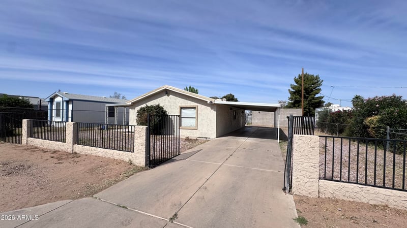 Listing details for 450 99th St, Mesa, AZ 85208 : This charming 3-bedroom, 2-bath affixed manufactured home sits on an oversized lot and offers both comfort and convenience. The property includes a separate backyard workshop, perfect for hobbies or additional storage. Enjoy features such as two RV gates, ample parking, a spacious carport, and a covered patio ideal for outdoor relaxation. Located near grocery stores, dining, and entertainment, this home also provides easy access to major roads and freeways. Best of all--no HOA fees.