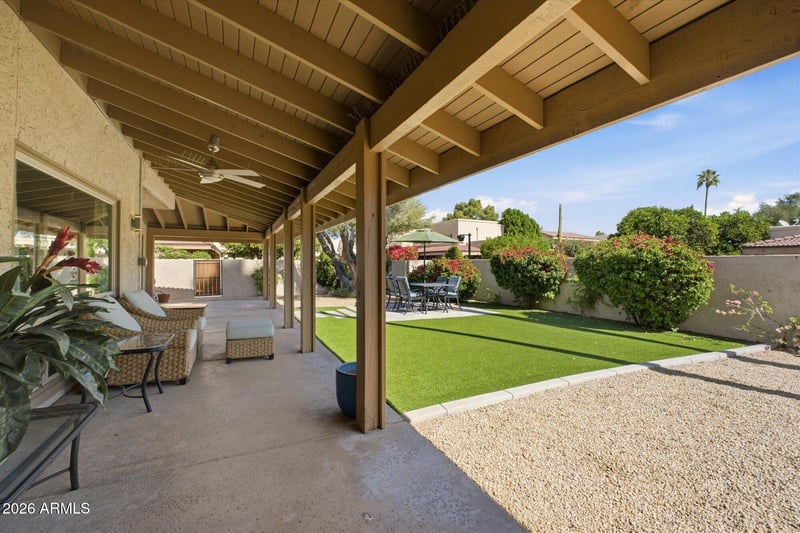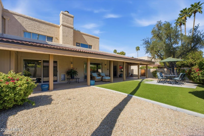 Listing details for 4525 66th St #62, Scottsdale, AZ 85251 : Situated on a premium corner lot in the 24/7 guard-gated community of Casa Del Monte, this spacious 3BR, 2BA home offers over 2,100 square feet of immaculately maintained living space just minutes from Fashion Square, Old Town and Camelback Mountain. One of the largest floor plans available, this home features a desirable primary suite on the main level and an expansive backyard that is larger than most in the community- perfect for entertaining, relaxing and enjoying Scottsdale's outdoor living. The layout provides privacy, quiet, and flexibility, with generous living and dining spaces throughout. Step into an airy kitchen bursting with natural light and a charming breakfast nook that flows seamlessly out to the covered patio (over 600 sf!). Upstairs you will find 2 spacious and bright bedrooms, one thoughtfully equipped with a Murphy bed for added flexibility and functionality, as well as the second bathroom. Recent upgrades include 4 new insulated, sliding patio doors, new windows, 2 new HVAC units, carpet, paint and more- see docs tab for full list! Casa Del Monte is a 24-hour guard-gated community offering three pools (one heated), spas, tennis & pickleball courts, basketball court, clubhouse, fitness center, and beautifully maintained grounds. The HOA covers exterior maintenance, roof repair and replacement, blanket insurance policy, water, sewer, garbage collection, pest control, and common area maintenance- for true maintenance free living! No age restrictions and short term rentals are allowed- making this an ideal primary residence, lock-and-leave second home, or investment property. Can be purchased fully furnished and ready to move right in or rent out if desired!