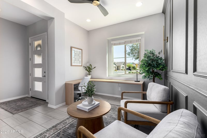 Listing details for 4540 Bethena St, Gilbert, AZ 85295 : Premium corner lot across from a greenbelt with only one neighboring property. This incredibly well-maintained, single-owner home features 10' ceilings, 8' doors, energy-efficient windows, and zoned cooling for year around comfort. A 16' sliding glass door off the kitchen creates seamless indoor/outdoor living, with an additional slider enhancing natural light.