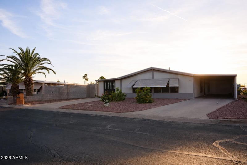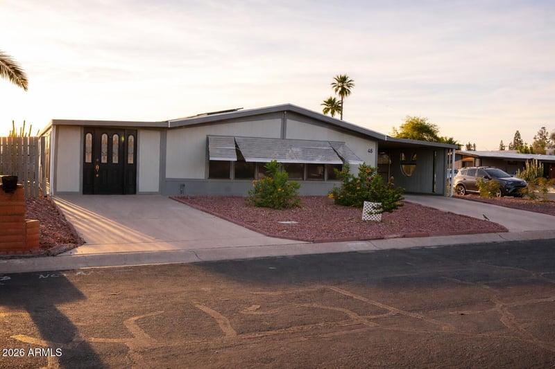 Listing details for 46 Amulet Ave, Mesa, AZ 85208 : Charming 2-bedroom, 2-bath home in Mesa featuring stylish butcher block countertops, new vinyl plank flooring, and an open-concept kitchen with vaulted ceilings, perfect for entertaining. Enjoy an active lifestyle with access to the community recreation center offering a billiards room, bingo, pickleball, tennis courts, plus a pool and relaxing spa. A perfect blend of comfort and convenience!