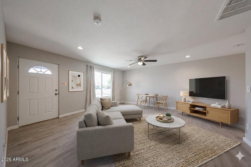 Listing details for 4610 48th Dr, Phoenix, AZ 85031 : Experience the perfect blend of modern style and functional living in this stunning, NEWLY RENOVATED residence. The exterior welcomes you with a semi-circle driveway, new landscaping, and a large front patio featuring a cozy firepit. Inside, find 3 spacious bedrooms plus a versatile flex room for an office or gym. The heart of the home is a brand-new kitchen with sleek stainless steel appliances, complemented by durable wood-look tile flooring. Situated on a massive 11,000 sqft lot, the expansive backyard is perfect for entertaining. A concrete slab is already in place, providing a foundation for a guest house, garage, or patio. Enjoy being moments from shopping and dining, with elementary, middle, and charter schools all within walking distance. Brand new low-e windows with updated coverings and patio doors. This professional renovation offers the rare space to expand your vision. NO HOA telling you what you can and can't do! Please note: select rooms have been digitally enhanced with premium virtual furnishings to showcase the scale and versatility of the living spaces