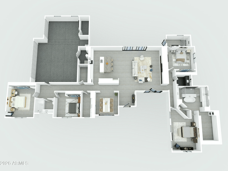 Listing details for 4717 Quailbrush Rd, Cave Creek, AZ 85331 : An architecturally driven desert residence set on just over an acre. Built in 2018, this modern residence offers 4 bedrooms, 3.5 baths, and a private pool, thoughtfully designed to prioritize space, light, and livability. The home features consistent tile flooring throughout, curated accents, contemporary fixtures, and exceptional lighting enhanced by a whole-home Lutron system. Generous gathering spaces and a flexible floor plan provide both openness and privacy, ideal for a variety of lifestyles. Expansive stacking glass doors connect the interior to generous paver patios, outdoor entertaining areas, and beautifully landscaped desert grounds. Surrounded by wide skies, desert terrain, and the distinctive character of Cave Creek, offering a setting that feels both connected and removed. This residence was created for buyers who value architecture, light, and thoughtful detail over passing trends. The builder's European background in electrical design is evident in the home's layered, balanced lighting, creating an atmosphere that feels intentional and composed from day to night. The floor plan offers flexibility and privacy, including a secondary ensuite bedroom well suited for guests or multigenerational living.