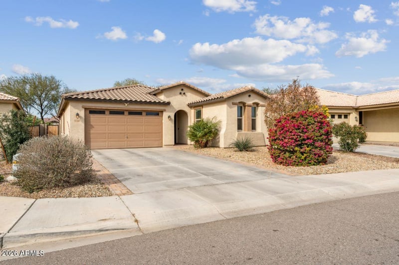 Listing details for 4748 Riata St, Gilbert, AZ 85297 : This home is stunning and still under builder warranty. Built in 2021, it offers 4 bedrooms and 2 bathrooms with a desirable split floor plan. The kitchen features a large island, granite countertops, and a 5-burner gas cooktop, perfect for entertaining. The dining area opens to a spacious great room with a custom paneled accent wall. Porcelain plank tile flows throughout the home. The primary suite showcases custom millwork, dual sinks, a large walk-in shower, and an oversized closet. Refrigerator, washer, and dryer are included. The backyard is an entertainer's dream with a ramada, travertine deck, fountain, café lights, artificial turf—and an amazing pool and spa creating the perfect outdoor retreat.
