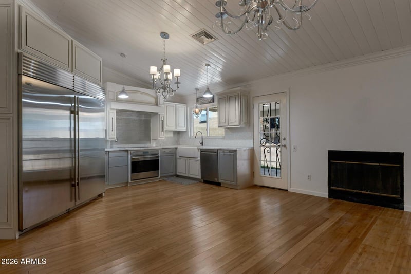Listing details for 4812 Butler Dr, Chandler, AZ 85226 : Beautifully upgraded 4‑bed home on a .25‑acre lot with mountain views, no HOA, and located in the top‑rated Kyrene School District. Features include maintenance‑free wood‑look exterior, triple‑pane windows, radiant barrier attic, added R24 insulation, solar‑assisted water heating, and updated flooring. The chef's kitchen boasts a 72'' SubZero, Wolf cooktop/oven, custom cabinetry, Carrera marble, and Blanco farmhouse sink. Enjoy a dedicated office, walk‑in pantry, updated baths, and a resort‑style backyard with resurfaced pool, travertine pavers, newer salt cell, upgraded filter, and 2026 pump. Large RV gate, storage area, Experience the rare combination of luxury, craftsmanship, and intelligent efficiency in this meticulously upgraded 4-bedroom home on a generous .25-acre lot in the highly sought-after Kyrene School District, with beautiful mountain views and no HOA. From the moment you arrive, the maintenance-free aluminum wood-look exterior, enclosed soffits, covered patios, and cobblestone driveway with matching walkways signal lasting quality and pride of ownership. Inside, comfort and performance are built in with triple-pane argon-filled windows, radiant barrier plus insulated attic, R24 insulation added in 2017 on the east exterior walls, solar-assisted water heating, and a whole-house electrical surge protector. Ceiling fans throughout enhance everyday living, and updated flooring flows through most of the home, complementing the rich, timeless finishes.