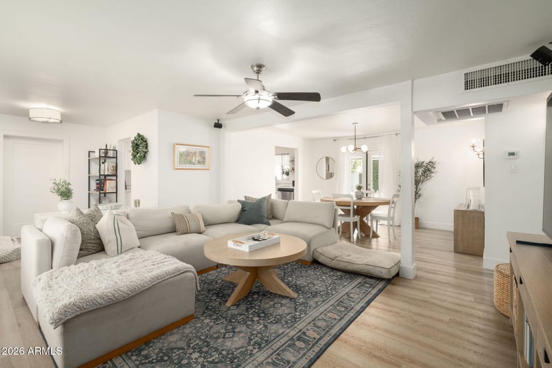 Listing details for 4813 Fairmount Ave, Phoenix, AZ 85018 : Don't miss this exceptional dual-residence property in the highly desirable Arcadia Osborn neighborhood. The Bungalow Arcadia units 1 & 2 are now ready for their new owner! The front house is a charming 3-bedroom, 2-bathroom home that is a light-filled gem featuring smooth stucco walls, updated flooring, and renovated bathrooms. Relax with your morning coffee on the covered patio before exploring the rest of this unique property. Access to the original Bungalow Arcadia is right around the corner through a separate side entrance. As you walk past the patio and custom mural, you enter this wildly successful Airbnb (boasting 40+ five-star reviews), which is a thoughtfully designed studio featuring a king bed, full kitchen, spa-like bathroom, generous closet space, and in-unit washer/dryer. Both residences share a stunning pavered courtyard adorned with bougainvillea and a grassy yard anchored by towering 25-foot mature ficus trees, creating a private sanctuary. Whether you're seeking rental income from both units, planning to live in one while renting the other, or considering multi-generational living arrangements, this property checks all the boxes.