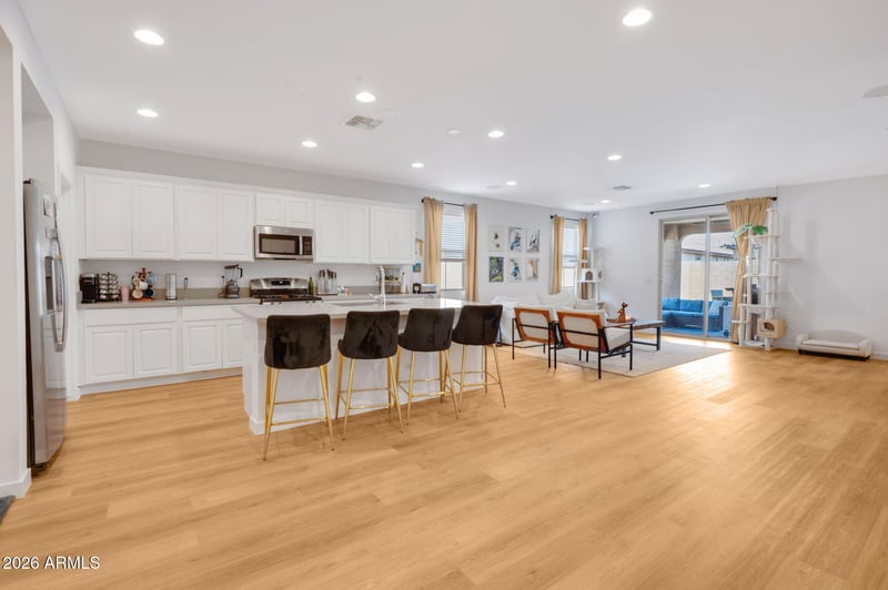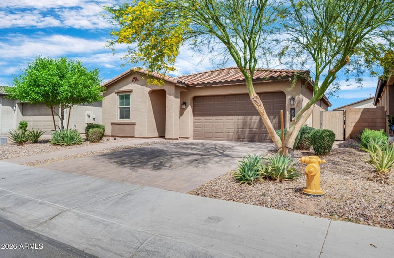 Listing details for 4821 117th Dr, Avondale, AZ 85323 : Nestled at the base of the stunning Estrella Mountains, this 3B/2B home with a versatile den offers modern comfort in the sought-after Alamar community. The fabulous kitchen is a true centerpiece, featuring an oversized island with quartz countertops, sleek cabinets, and ample prep space--perfect for both entertaining and everyday living. The floor plan provides privacy, while the spacious family room offers a welcoming space to relax and gather. Bathrooms also feature elegant cabinetry, adding to the home's fresh, modern appeal. Enjoy the beauty of a newer build in a vibrant neighborhood with scenic mountain views, parks, and community amenities just steps away.
