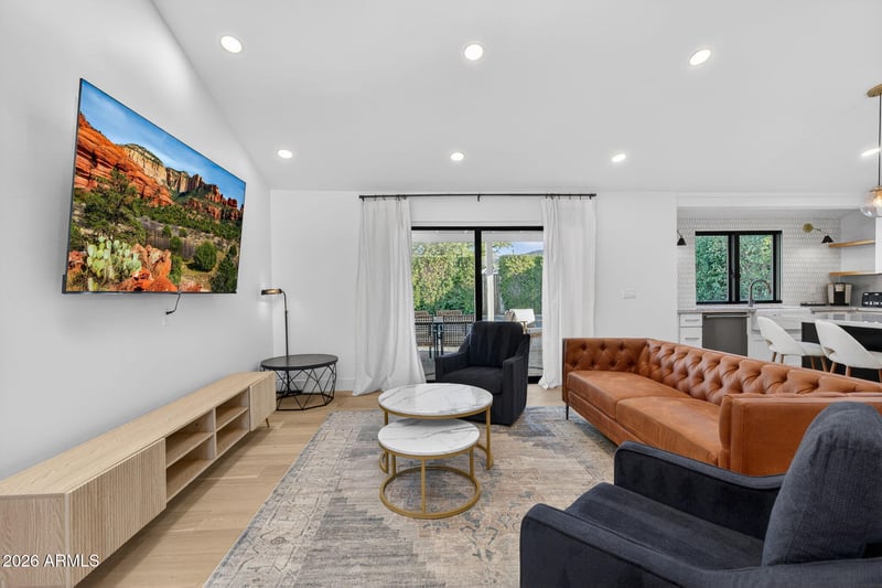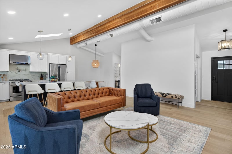 Listing details for 4842 Fairmount Ave, Phoenix, AZ 85018 : Be the proud owner of this elegant home! A lush grassy front yard, a 2-car garage, & a stylish paver driveway set the tone for what awaits inside. Beautifully designed open layout features vaulted ceilings, rich wood flooring, recessed lighting, & neutral paint. At the heart of the home is a modern kitchen, equipped with SS appliances, quartz counters/backsplash, a farmhouse sink, white cabinetry, a skylight, & a breakfast bar island. A convenient powder room adds functionality! Delightful main retreat has French doors to the backyard & a luxurious bathroom offering dual sinks & an oversized walk-in shower w/dual shower heads & a soaking tub area. Backyard oasis boasts breathtaking mountain views, a covered patio, a sparkling blue pool, & a private putting green. A must-see gem!