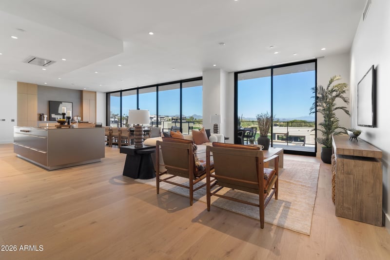 Listing details for 4849 Camelback Ridge Dr #B308, Scottsdale, AZ 85251 : Set against the dramatic backdrop of Camelback Mountain, with expansive views of the McDowell Mountains, discover a private residential enclave adjacent to The Phoenician Resort—one of Arizona's most celebrated luxury destinations. Welcome to The Ascent Camelback Residences. Designed by Nelson Architects and Vallone Interior Design, this home is defined by its 1,100 sq. ft. east-facing wraparound terrace, where sweeping 180° mountain views elevate Arizona indoor/outdoor living to its highest expression. Spanning 3,141 sq. ft. of living space, the residence offers 3 bedrooms, an office/den, and 4 baths, showcasing the finest finishes, including Bulthaup kitchens, Provenza wood floors, Sub-Zero and Wolf appliances, Waterworks fixtures and automated Lutron shades. Soaring 10-foot ceilings and multi-slide telescoping glass doors that seamlessly extend the indoor living space, create an effortless connection to the wraparound terrace, complete with a built-in BBQ and breathtaking mountain vistas. Residents enjoy private, owner-exclusive access to The Mountain Club, a private retreat featuring a resort-style pool, state-of-the-art fitness center, and elegant social spaces, along with optional privileges at the Phoenician Resort's renowned golf, spa, and dining venues. Together, these offerings create a premier luxury lifestyle immersed in Scottsdale's vibrant dining and entertainment experience.