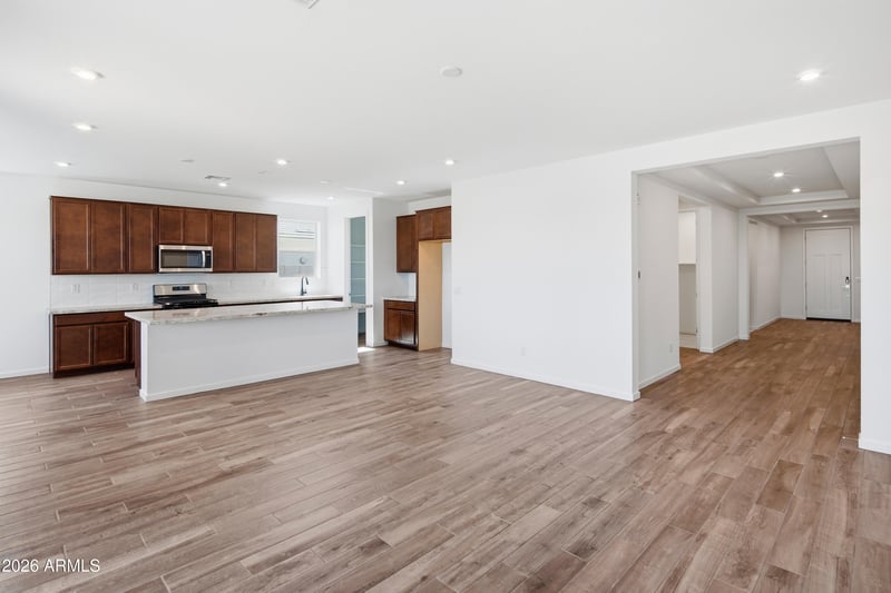 Listing details for 4875 239th Dr, Buckeye, AZ 85326 : This popular single-story Imperial plan showcases 4 spacious bedrooms, 2.5 bathrooms, and a 3-car tandem garage, delivering the perfect blend of comfort and versatility. Step inside and be charmed by the oak wood tile flooring that leads you into an open, modern kitchen featuring 42'' dark wood cabinetry, quartz countertops, a stylish tile backsplash, and a dedicated dining room ideal for gatherings. The kitchen comes fully equipped with stainless steel appliances, including a gas range and built-in microwave. The primary suite offers a relaxing escape with its large walk-in shower. The home is extremely energy efficient and has the added benefit of INCLUDED OWNED SOLAR. Don't miss out on this amazing home in a growing area!