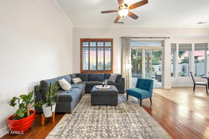 Listing details for 4909 Hamblin Dr, Phoenix, AZ 85054 : MUST SEE * All THE MAJOR UPGRADES ARE DONE - Extravagant Elliott Home in Highly Desirable Desert Ridge * Huge Owner's Suite DOWNSTAIRS * Engineered Hardwood Floors w/18'' Porcelain Tile throughout * Upgraded Kitchen w/42'' Maple Cabinets & Custom Coffee / Wine Cabinet * Thermador 36'' Natural Gas Cook Top * Granite Counter Tops * Elegant Living, Dining, Family Room W/Gas Fireplace * Oasis Style Rear Yard w/Play Pool, Inground Spa, Mature Citrus Trees & Lush Vines * Solar PRE-PAID Lease * Two 16 Seer Trane A/C 2022 * Energy Shield Windows 2021 * Roof Underlayment 2023 * Clopay Garage Doors 2023 * Mini Split in Garage 2024 * Rear Yard Irrigation System 2025 * 3/4 BRMS! * 2X6 Const.* Custom Shutters, Baseboards & Crown Moldings * RV Gate * Pride of Ownership is apparent in this amazing home STUNNING, MOVE-IN READY Elliott home in highly desirable Desert Ridge ALL major upgrades complete! This beautifully remodeled residence features a huge downstairs owner's suite with private entry, ideal for multigenerational living or guests. Engineered hardwood floors throughout with 18" porcelain tile in foyer, kitchen, laundry, and baths.