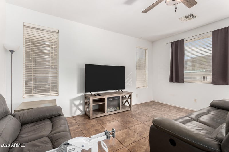 Listing details for 4967 Meadow Lark Way, San Tan Valley, AZ 85140 : From its inviting curb appeal to the light-filled, open interior, this beautifully maintained home offers the perfect blend of comfort and modern design in the desirable Villages at Castlegate. Mature trees and low-maintenance artificial turf create an attractive and easy-care exterior. Inside, a main-floor den and open-concept layout make everyday living and entertaining effortless, complemented by plush carpet, tile flooring, and abundant natural light. The kitchen features generous cabinet and counter space, a breakfast bar, and clear sightlines to the living area. Upstairs, all bedrooms are thoughtfully arranged alongside a spacious loft. The primary suite impresses with double-door entry, two walk-in closets, and a private en-suite bath. The large backyard with artificial grass provides endless potential for outdoor enjoyment. Comfort, style, and versatility come together in a prime location.