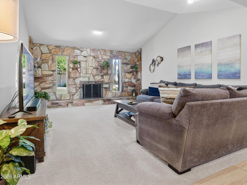 Listing details for 5012 Winchcomb Dr, Scottsdale, AZ 85254 : Welcome to Scottsdale's Magic Zip Code -- 85254 | No HOA | Greenbrier East Rare oversized pie-shaped lot with room to add your dream pool -- no HOA approval needed. Scottsdale address. Phoenix taxes. Paradise Valley Unified School District (Horizon High). This is the trifecta that makes 85254 one of Arizona's most sought-after zip codes. Beautifully maintained & thoughtfully updated single-story home with dramatic floor-to-ceiling stone fireplace as the architectural centerpiece. Open-concept kitchen features a peninsula, stainless appliances, and wood-plank porcelain tile flowing throughout main living areas. Real grass backyard with new paver patio hardscape, mature trees, and lush landscaping -- serene and private. Updates & Improvements: Roof, AC & major systems (2018)... AC has a 10 year warranty | Updated bathrooms | Renovated kitchen with quartz counters | New gutters | Sun screens on sun-facing windows | Custom drapes for front facing windows | Custom window treatments for sliding glass doors | Washer & dryer included | Refrigerator included | Garage door opener with keypad | Storage shed on cement slab | Minutes from: Kierland Commons | Scottsdale Quarter | PV Mall redevelopment | Westin Kierland Resort & Golf | Stonecreek Golf Club | Mayo Clinic | Loop 101 & SR-51 Ideal for: Relocating professionals | Growing families | Remote workers | STR/Airbnb investors (no HOA restrictions) | Snowbirds Short-term rental eligible. Oversized lot. No restrictions. Turnkey condition. Priced to move.