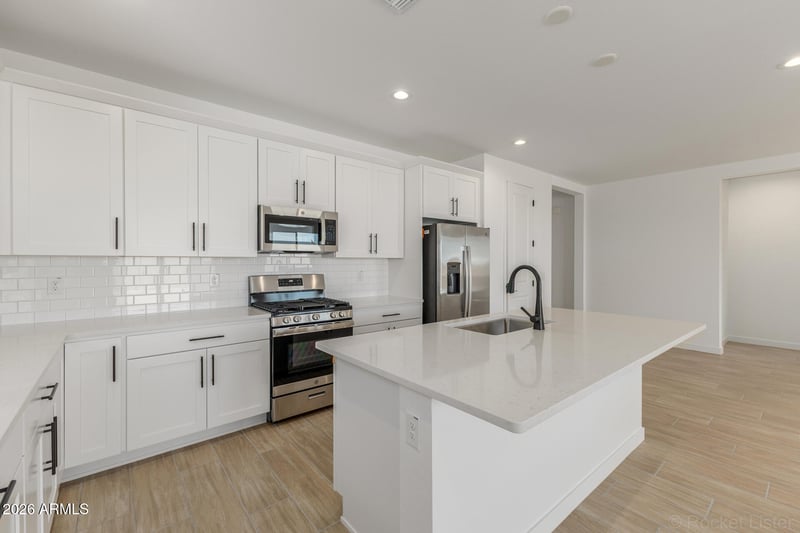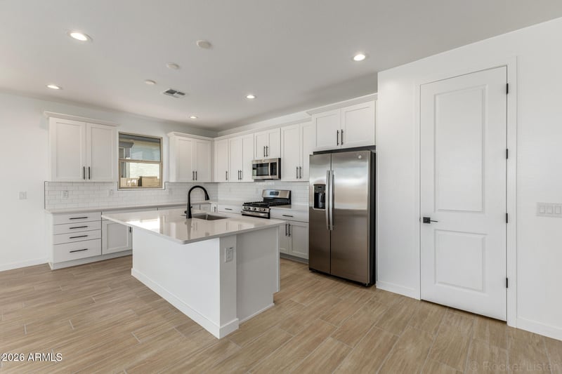 Listing details for 5018 Chuck Box Rd, Laveen, AZ 85339 : Nestled on a spacious lot with a desirable north-south orientation, the Agate plan offers the ideal canvas for creating your dream backyard oasis after you move in. The open concept design seamlessly blends indoor and outdoor living, making it perfect for hosting gatherings or relaxing in style. At the heart of this stunning layout, a grand center-meet door opens to create a natural flow between the inviting indoor spaces and the expansive backyard. The chef-inspired kitchen flows effortlessly into the great room, ensuring that you can enjoy time with family and friends while also taking in the beauty of your outdoor surroundings. The layout emphasizes functionality and comfort, with large windows that let in abundant natural light and provide unobstructed views of your backyard retreat you envision. With ample space both inside and out, the Agate plan is designed to bring your vision of outdoor living to life whether you're relaxing, enjoying dining, or hosting a sunset gathering.