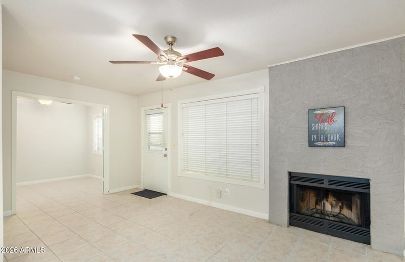The downstairs bedroom offers flexibility for guests, a home office, or whatever fits your lifestyle. Upstairs, the owner's suite becomes your personal retreat, complete with its own fireplace and a comfortable, tucked-away feel. Updated bathrooms and newer carpet carry that same fresh, cohesive look throughout. Just minutes from ASU, the light rail, and major freeways, this home keeps you connected while still feeling like your own space to unwind.