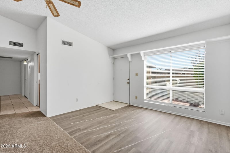 Listing details for 5120 Carol Ave, Glendale, AZ 85302 : Charming 1-story townhouse offering 2 bedrooms and 2 bathrooms with a functional, easy-living layout. The kitchen features a bay window that brings in natural light, while the home includes a laundry closet for added convenience. Enjoy a covered back porch and fenced backyard, perfect for relaxing or outdoor enjoyment. An attached 2-car carport provides convenient covered parking.
